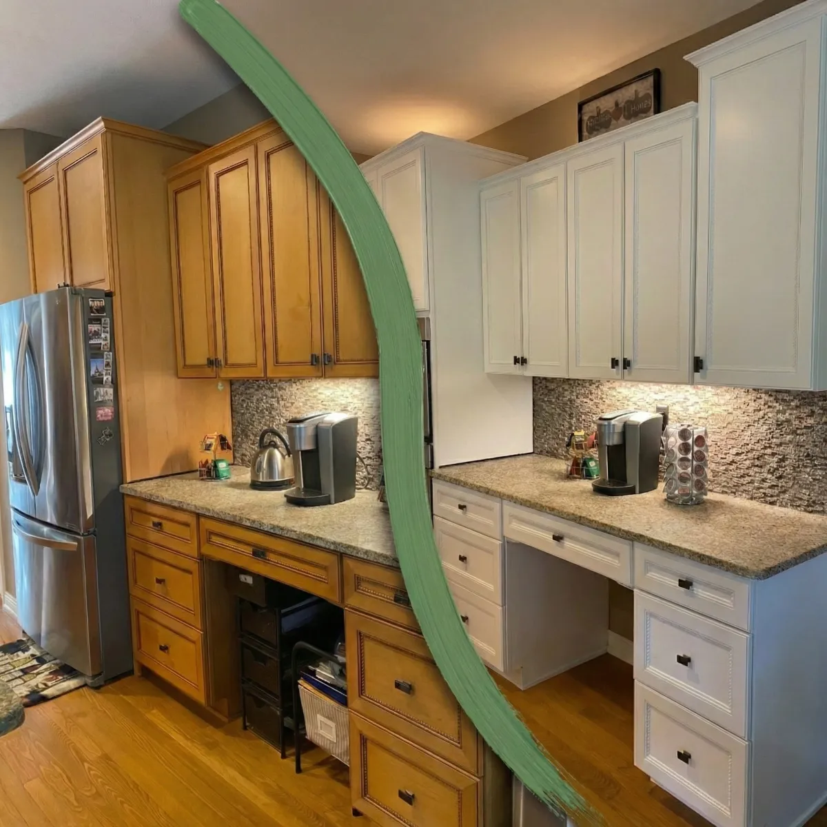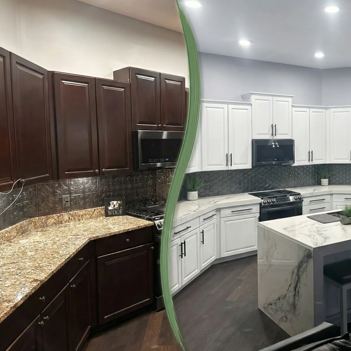 Kitchen cabinets, bathroom vanities, office built-ins, and more — refinished for a modern, high-end appearance without replacing them.